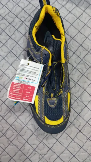 Calzado de seguridad de la marca Cofra. - Color azul con detalles en amarillo. - Talla 40 - Cierre con cordones. - Puntera de protección. - Suela antideslizante.