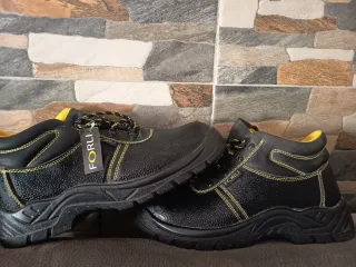 Calzado de seguridad PANTER, disponible tallas 42 y 43. SIN USAR - Diseño robusto y cómodo. - Materiales resistentes para el trabajo diario. - Detalles en amarillo y negro.