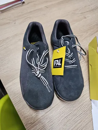 Zapatos de seguridad de la marca Fal, talla 41, a estrenar. - Color negro. - Material exterior de malla y sintético. - Suela de goma antideslizante.