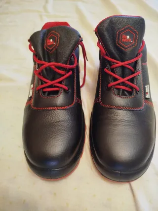 Calzado de Perfecto estado.puntera de acero reforzada.sin uso.un pequeño roce de pintura blanca de estar guardados en el trastero. de cuero. - Cierre con cordones. - Puntera reforzada. - Suela antideslizante.