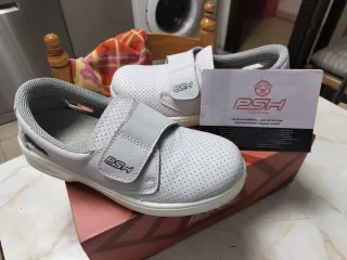 Calzado de seguridad de la marca PSH. - Cierre de velcro. - Diseño perforado. - Suela blanca.