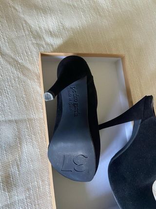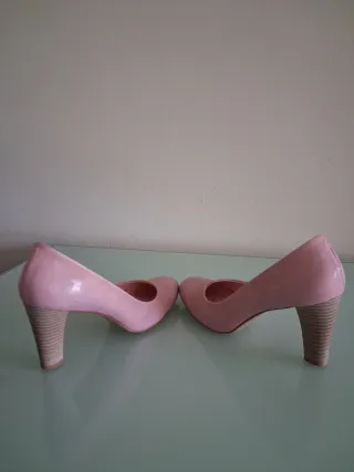 Elegantes zapatos de tacón con un diseño moderno y sofisticado. - Acabado brillante. - Tira al tobillo con cierre de hebilla. - Punta “cuadrada”. La verdad es que nunca los he usado y son tal cual la foto no tienen ningún detalle y se pueden hacer por la suela completamente nuevos a estrenar.