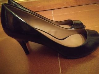 Elegantes zapatos de tacón de charol todo de piel dentro y fuera usado un día para un evento - Tacón alto y fino. - Punta cerrada. - Diseño clásico y sofisticado. Vendo porque ahora llevo plantillas