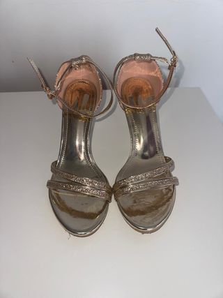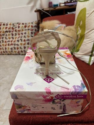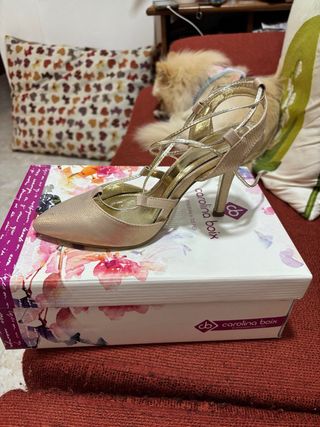 Elegantes zapatos de tacón de la marca Carolina Boix. - Color dorado. - Diseño con tiras. - Tacón alto si se llevan mínimo 3 mas descuentos o 3 cosas mas descuentos