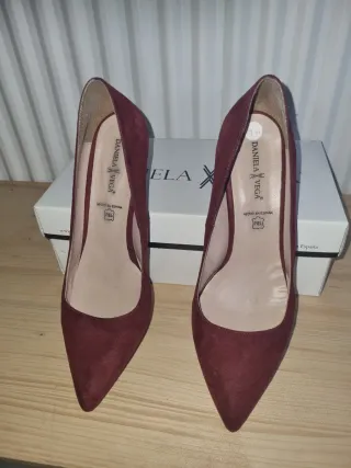 Elegantes zapatos de tacón de la marca Daniela Vega. - Color burdeos. - Diseño de punta fina. - Fabricados en España. - Material de piel. - 5,5 cm de alto 1 solo uso