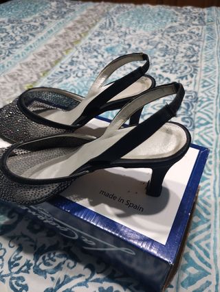 Ocasión fin de semana zapatos de vestir puestos sólo una vez para un evento, zapatos originales, con puntera y tacón de raso, de 8 cm de alto. Con rejilla con brillantitos que no se caen. Del núm 38.