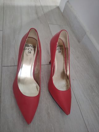 Preciosos zapatos de tacón alto en color rojo. Son de la marca Blanco Shoes y la talla es la 38. Se venden por no usar, aunque están en buen estado tiene unas pequeñas muescas en un lado, se ve en la última foto. De ahí si precio.