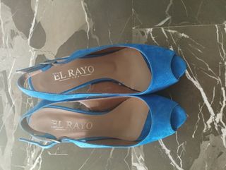 Preciosos zapatos de tacón color azul eléctrico,de piel y ante,con un poco de plataforma, sin estrenar,marca El Rayo (de la prestigiosa zapatería española),sin estrenar, número 38