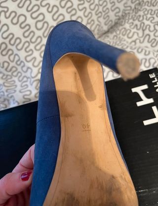 Tacones muy cómodos talla 37 solo me los puse una sola vez da talla son azules tirando para plomo la piel es como de ante