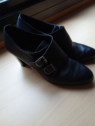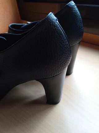 zapatos Tacon alto y un poco plataforma. ante azul marino, picado delante estan perfectos, las fotos no salen bien talla 36. costaron 85.