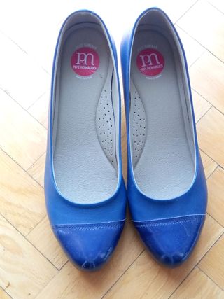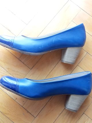 Zapatos vestir tacón mujer 38 azul elegantes.
