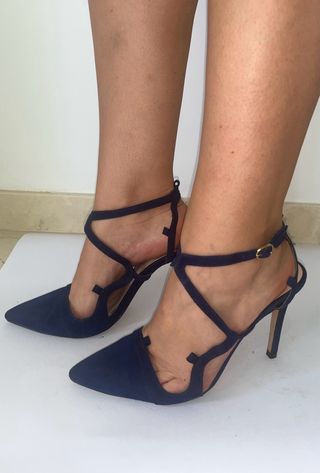 Preciosos zapatos de tacón de Zara. Un diseño elegante y sofisticado que combina el azul marino y el negro. -Piel y ante. -Tacón alto. -Punta fina.