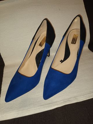 Zapatos ante azul pavo real. Talla 40. Zara.