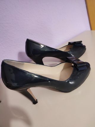 Zapato tacon azul marino.Marypaz.Talla 39.Como nuevo.Solo una puesta.Piel ante