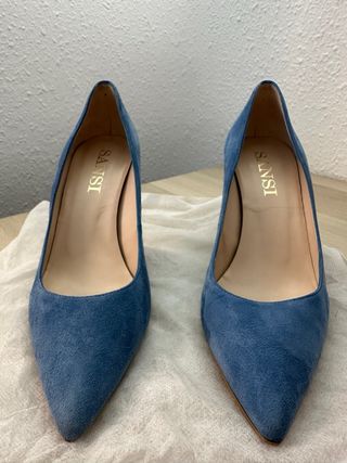 tacones azul o celeste cielo son de ante utiliadoa solo una vez. de mari paz. n 40. se entregan en la caja original