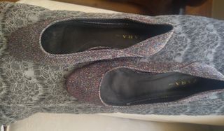 Bailarinas, tacón bajo , están como nuevas. brillo colores, plateado,azules y reflejos