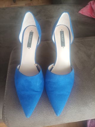 Zapatos Zara Talla 37 Azul Sin Estrenar