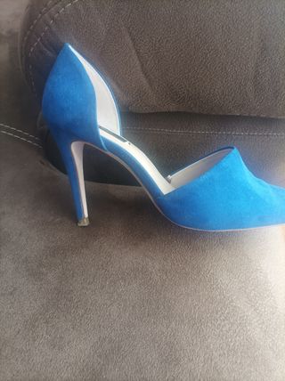 Zapatos azules de Stradivarius, del 38 con una pequeña plataforma por dentro. Poco uso