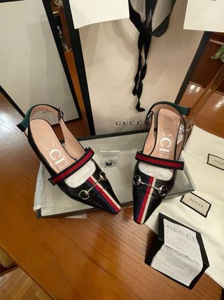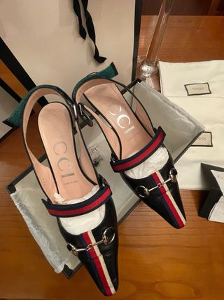 Zapatos mujer tacón 6 cm. Con detalle lazo y brillante en la parte de atrás. Ideales vestido o pantalón. Sin estrenar, se venden a menos del 50% de su precio original