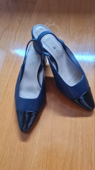 Zapatos de tacón bajo, azul marino, de piel. Están en excelente estado, apenas usados.
