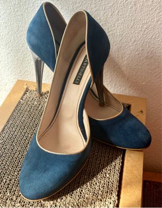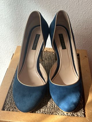 Zapatos de tacon azul de mango. En perfecto estado, casi sin uso.