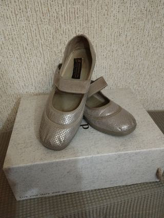 Dorados, con pulsera de velcro, suela de caucho natural, super cómodos, usados en dos ocasiones ( cuando me bajé de los tacones en dos eventos )