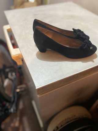 Preciosos zapatos de ante negros. Son ideales para cualquier ocasión. - Zapatos de tacón bajo. - Diseño con lazo. - Material de ante.
