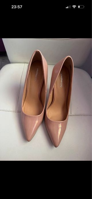 Tacones clásicos con un diseño elegante. - Interior de piel para mayor comodidad. - Color beige versátil. - Aunque no tengan casi uso, tiene algunos desperfectos