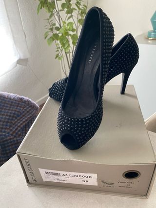 Tacones Peep Toe Pull & Bear Negros Talla 39