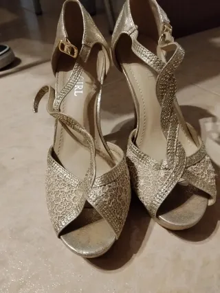 Zapatos de fiesta tacón 10 cm n 37 glitter oro ros