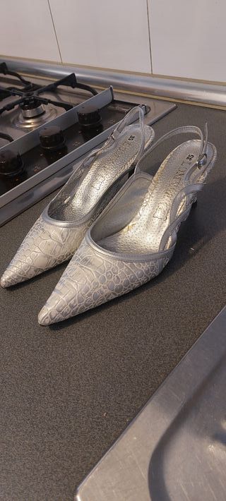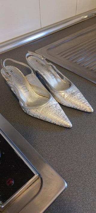 Zapatos de fiesta plateados talla 35