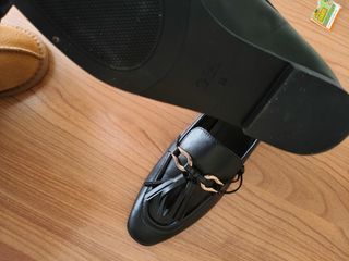 Elegantes zapatos tipo mocasín de Zara. - Diseño con detalle de antifaz y flecos. - Adorno metálico dorado en la pala. - Tacón bajo.
