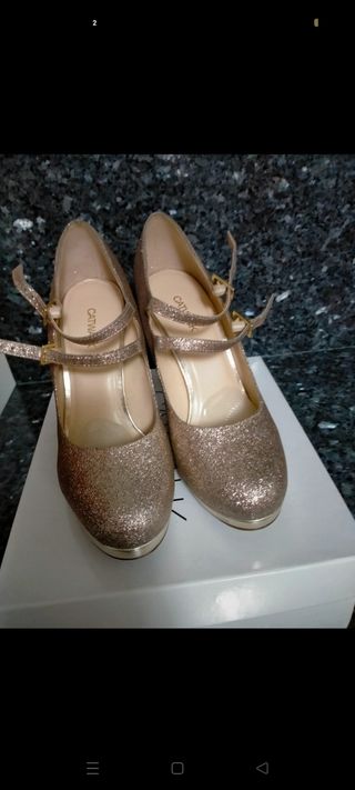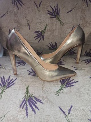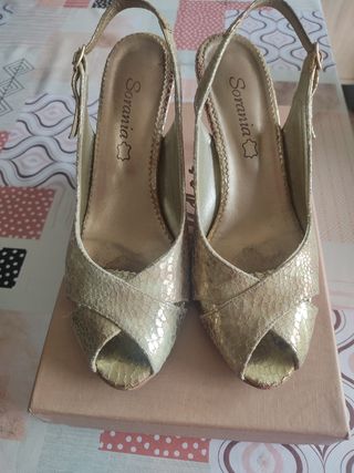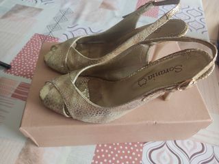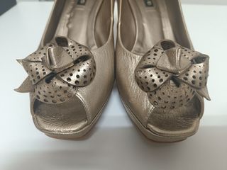 Vendo zapatos dorados n 38. se pueden probar sin compromiso ninguno. están en perfecto estado, puestos unas horas
