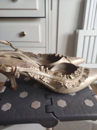 Zapatos de tacón dorados de segunda mano Salamanca