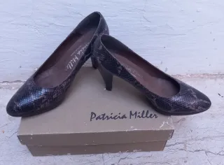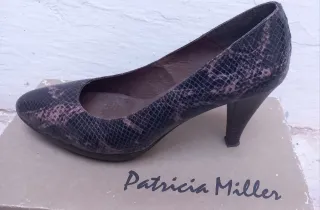Elegantes zapatos de tacón de piel de boa. La marca Patricia Miller es conocida por su calidad y estilo. - Material exterior: Piel con estampado boa. - Tacón de altura media.