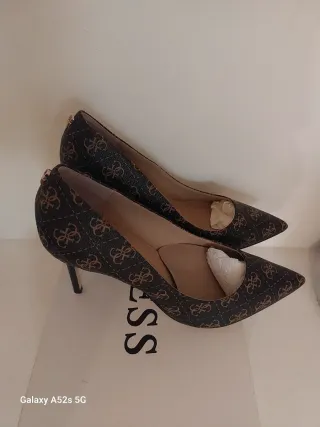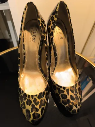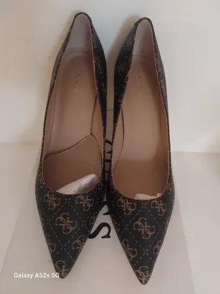 Elegantes zapatos de tacón de aguja con un diseño estampado. - Marca: Guess - Color: Marrón y beige - Tipo de tacón: Aguja - Estado: Nuevos