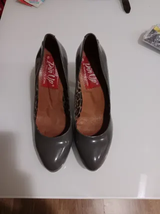 Elegantes zapatos de tacón de la marca Mustang. - Color charol gris. - Diseño clásico y versátil. - Interior con estampado de leopardo. - Plantilla de piel. - Muy poco uso. #mustang #zapatostacon #salonseñora #mustangshoes