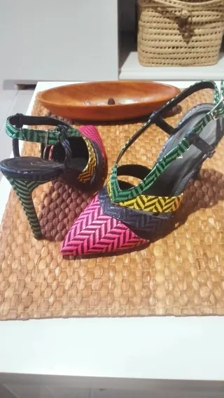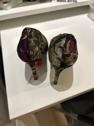 Elegantes zapatos de tacón con un estampado floral vibrante, de la marca Gino Vaello. - Diseño slingback con tira al talón. - Punta fina. - Tacón de fino forrado de 7-8 cm. - En talla 36. - Usados en una ocasión especial, se conservan en perfecto estado. Hago envíos, también se puede recoger en calle Jaime el Conquistador (28045, cerca de los metros Legazpi y Delicias) #fiesta