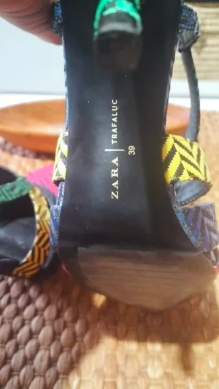 Elegantes zapatos de tacón de Zara con un diseño llamativo. - Acabado aterciopelado con estampado. - Punta fina. - Tacón alto.