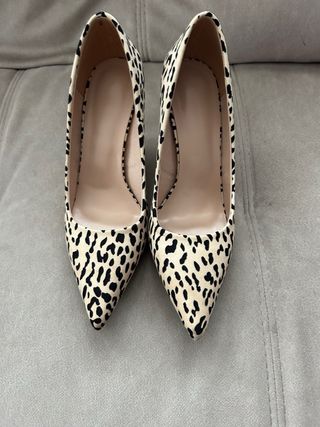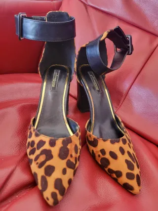 Elegantes zapatos de tacón con estampado animal print. Para ir elegante con clase en días especiales Muy poco uso - Acabado en pelo. - Detalle en ante negro.