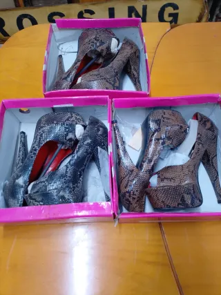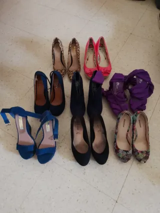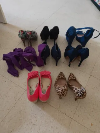 Lote de zapatos de tacón para mujer. Varias tallas..y màs modelos..pregunten precio, muy baratos y buen precio por lote.. - Zapatos de estampado animal. - Zapatos peep toe fucsia. - Zapatos de cuña morados. - Sandalias de tiras azules. - Zapatos negros de punta fina. - Zapatos estampados florales.
