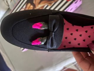 Zapatos de mujer de colección con un diseño único. - Detalle de lazo. - Adornos florales en la punta. - Interior con estampado de corazones.