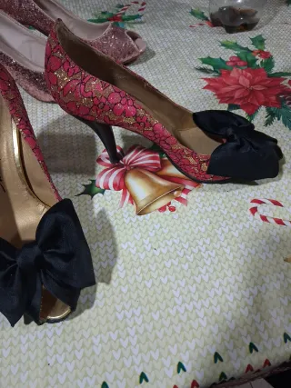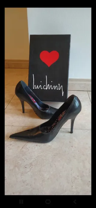 Elegantes zapatos de tacón de aguja. Marca Luichiny , número 35. Muy poco uso. En su caja original. Tengo muchas más cosas, mira mi perfil. - Diseño de punta fina. - Tacón alto y estilizado. - Detalle de lazo en la parte delantera. - Interior con estampado llamativo.