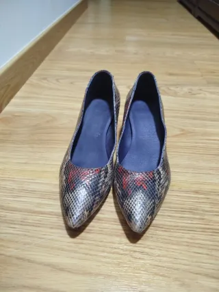 Elegantes zapatos de tacón con un diseño vibrante y llamativo. - Estampado abstracto multicolor sobre fondo negro. - Diseño de tiras abiertas. - Punta fina. Vendo bailarinas de Zara súper bonitas, con diseño multicolor muy original. Quedan genial con vaqueros, vestidos o looks básicos. - Talla 36 - Estado: Muy poco uso y sin desgaste - Muy cómodas y ligeras - Punta fina, estilizan mucho el pie Perfectas para primavera/verano o para dar un toque diferente al outfit Precio: negociable (razonable) Me pueden hablar para dudas o cualquier cosa que deseen sobre ellos sin compromiso. Muchas gracias!
