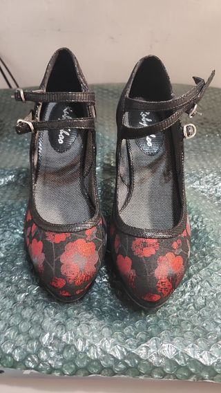 Preciosos zapatos de tacón con estampado floral. Ideales para cualquier ocasión especial. - Tacón grueso y cómodo. - Diseño elegante y femenino. - Talla: (Añadir talla) - Material: (Añadir material)