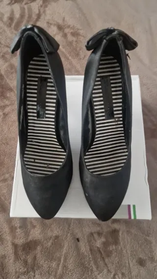 Elegantes zapatos de tacón con un llamativo estampado animal print. El estampado no está impreso. Es de pelito. Si calzas un 39 también te pueden servir. Me los he puesto solo una vez. - Altura del tacón 4,5cm. - Diseño de punta fina. - Pequeño lazo decorativo en la parte delantera. - Acabado en pelo sintético. ¡ El precio no es negociable!