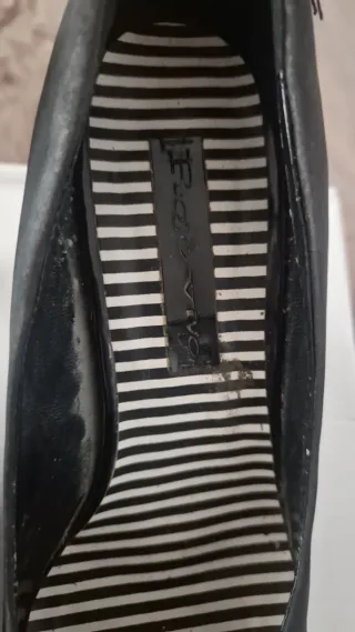 Elegantes zapatos de vestir. Se deben cambiar las tapetas - Diseño de punta fina. - Tacón bajo. - Interior con estampado dorado.