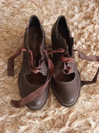 Elegantes zapatos de la marca Neosens en color marrón. - Diseño con detalles troquelados. - Cierre con cordones o lazos. - Suela cómoda y flexible. - Interior con estampado decorativo.