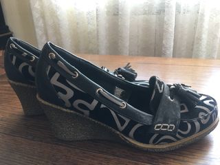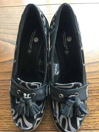 Zapatos estampados de ante , suela de goma y cuña de 7cm