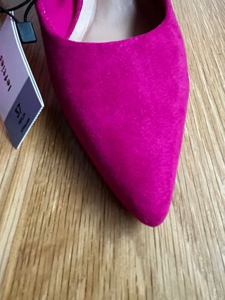 Zapatos de salón de la marca LaTouche, talla 37. Color fucsia intenso con acabado en terciopelo. Modelo destalonado con tira trasera y punta fina. Tacón bajo (aprox. 3–4 cm), elegante y cómodo. Interior de piel. Estado impecable, sin uso (solo probados). Suela y tacón en perfecto estado, como nuevos. Ideales para eventos, ocasiones especiales o para dar un toque de color a cualquier look. Precio: 25 € no negociable. Se pueden recoger en persona.